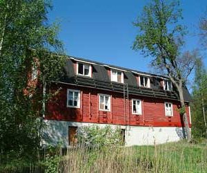 Tammimäki – Ekbacka Kuvan suuri, mansardikattoinen rakennus näkyy kauas tielle. Se on rakennettu vuonna 1925 ja ollut alkujaan talli-ja navettarakennus.